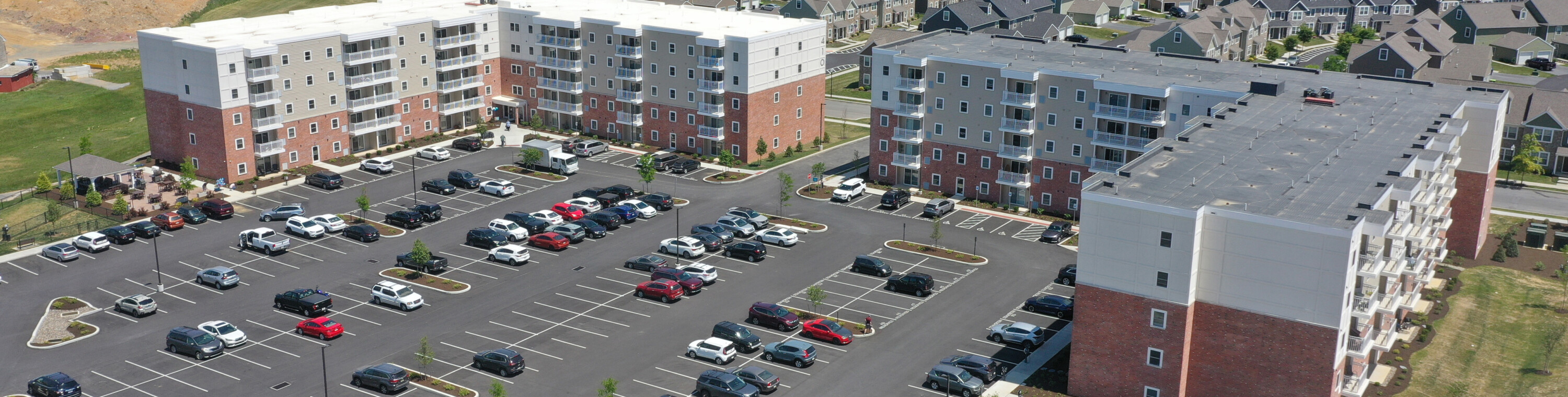 Benchmark constructed two, five-story apartment buildings on a greenfield site in North Cornwall, PA. Each apartment building comprises of 110 units with one- and two-bedroom apartments, two common areas, a mail room, and on-site parking.